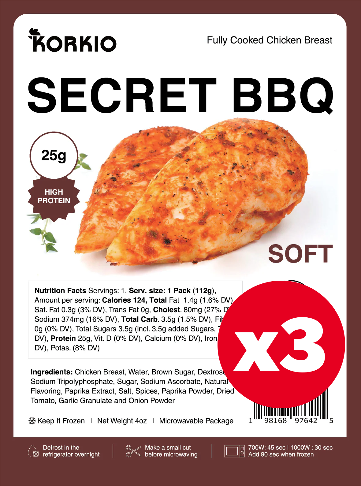 (3X) Ready to Eat Chicken Breast - Secret BBQ 한국식 닭가슴살 바베큐 4oz (113g)