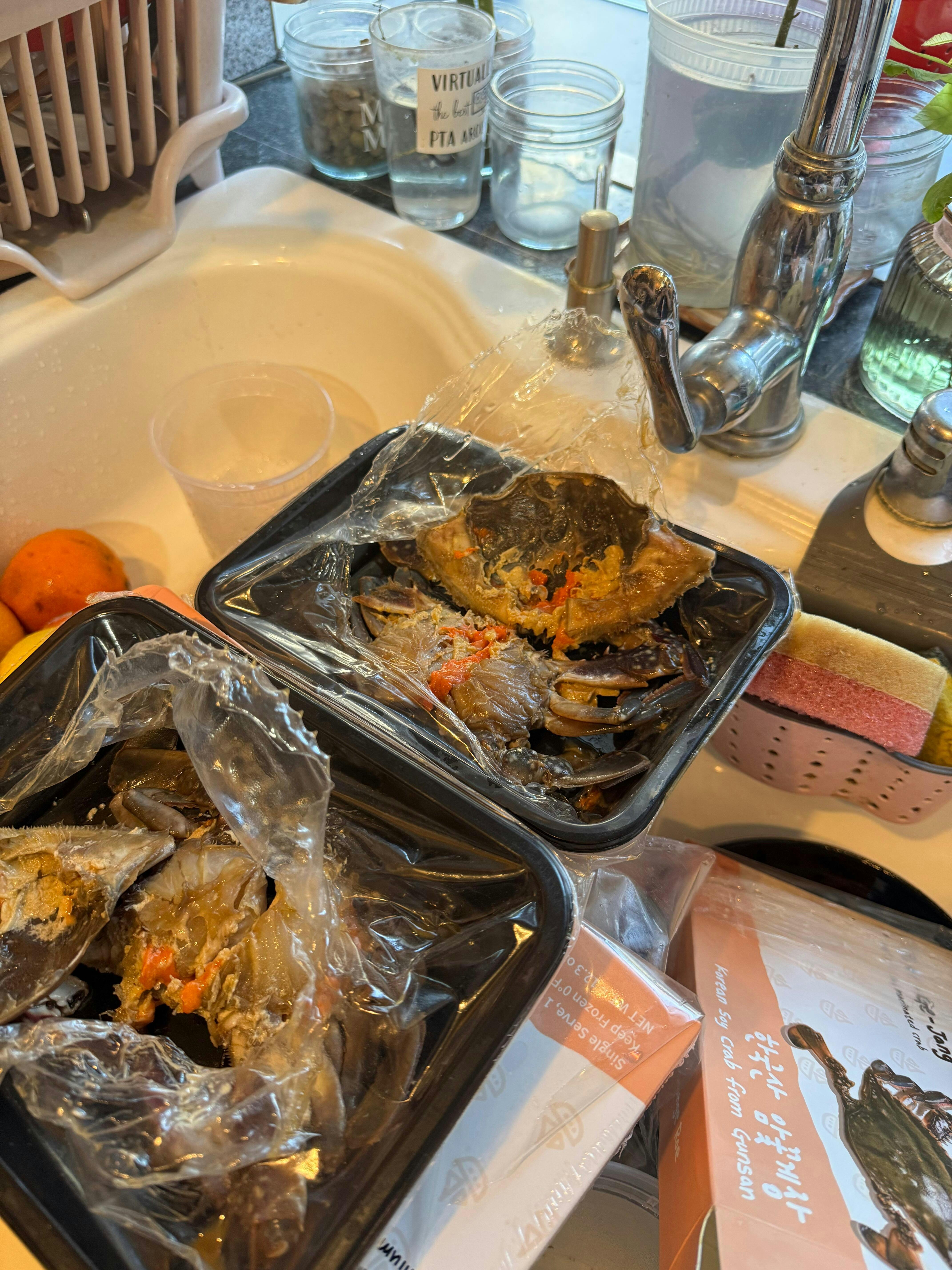 These crabs USED to be really good when they were in the plastic box packaging. After they changed the packaging, the crab quality also changed. The crabs are smaller, MUSHIER (the meat in the crab doesn’t withhold its shape) and the crab roe is less abundant. I ordered had 6 crabs total with the new packaging and one of them, the packing became unsealed and crab juices leaking through the box. The ones in the plastic wrap also were all di. I ordered many times prior to the package change but I would not order again unless the quality was back to the original crab and packaging. Very disappointing as this was my favorite place to get raw marinated crab and now I feel like it’s worse. The extra items they also add to the package I feel doesn’t add any value to it. The seaweed never stays crispy (always wet and soggy?) so I never use it.