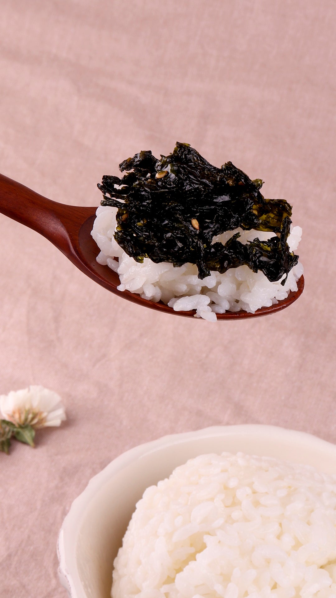 Premium traditional roasted seaweed flakes crafted with 30 years of expertise.
